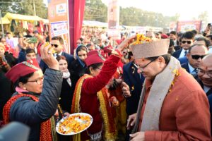 मुख्यमंत्री ने मातृशक्ति को विशेष रूप से सम्बोधित करते हुए कहा कि उत्तराखंड की संस्कृति की असली वाहक आप हैं। आपके संस्कार, आपकी मेहनत और आपका त्याग ही हमारे समाज की सबसे बड़ी ताकत है। इसलिए महिला सशक्तिकरण हमारे लिए केवल नारा नहीं, बल्कि संकल्प है। उन्होंने कहा कि जो लोग दशकों तक सिर्फ वादे करते रहे, वे आज हमारी उपलब्धियों से घबराए हुए हैं, लेकिन मैं, आज इस मंच के माध्यम से ये स्पष्ट कर देना चाहता हूं कि “ये देवभूमि है, यहां विकास भी होगा, हमारी संस्कृति भी बचेगी और राष्ट्रविरोधी लोगों को यहां से अंतोतगत्वा जाना ही पड़ेगा”। हमारा लक्ष्य उत्तराखंड को देश का सर्वश्रेष्ठ राज्य बनाना है। और ये लक्ष्य कोई नारा नहीं, बल्कि हमारा “विकल्प रहित संकल्प” है और मुझे पूर्ण विश्वास है कि हमारे इस संकल्प को सिद्धि तक पहुंचाने के लिए आप सभी इसी प्रकार हमारी सरकार का सहयोग करते रहेंगे।